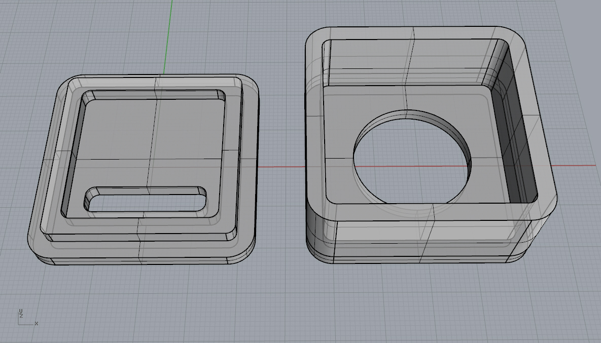 Then I proceeded to model it in Rhino. I started with some basic shapes to be repeatedly extruded to form the different shapes. The corners of the shapes were rounded with the Fillet command.