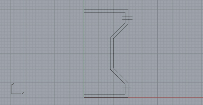 I wanted to add some groves to the exterior to make it more detailed. Using the Offset command, I made an offsetting line 2mm inside the first line. Then I added some horizontal lines for use with the Trim command.