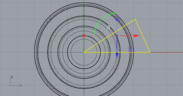 Then I used the Polyline and ExtrudeCrv commands to create a wedge shaped object and positioned it to intersect with the ring.