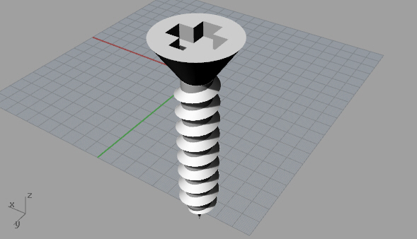 Next I used the Scale1D command to shrink the screw by a factor of 10. The model had been been built at 10x the scale so that I could take advantage of the 1.0 mm grid snapping. In retrospect I should have changed the grid snapping to 0.1 mm in the document properties.