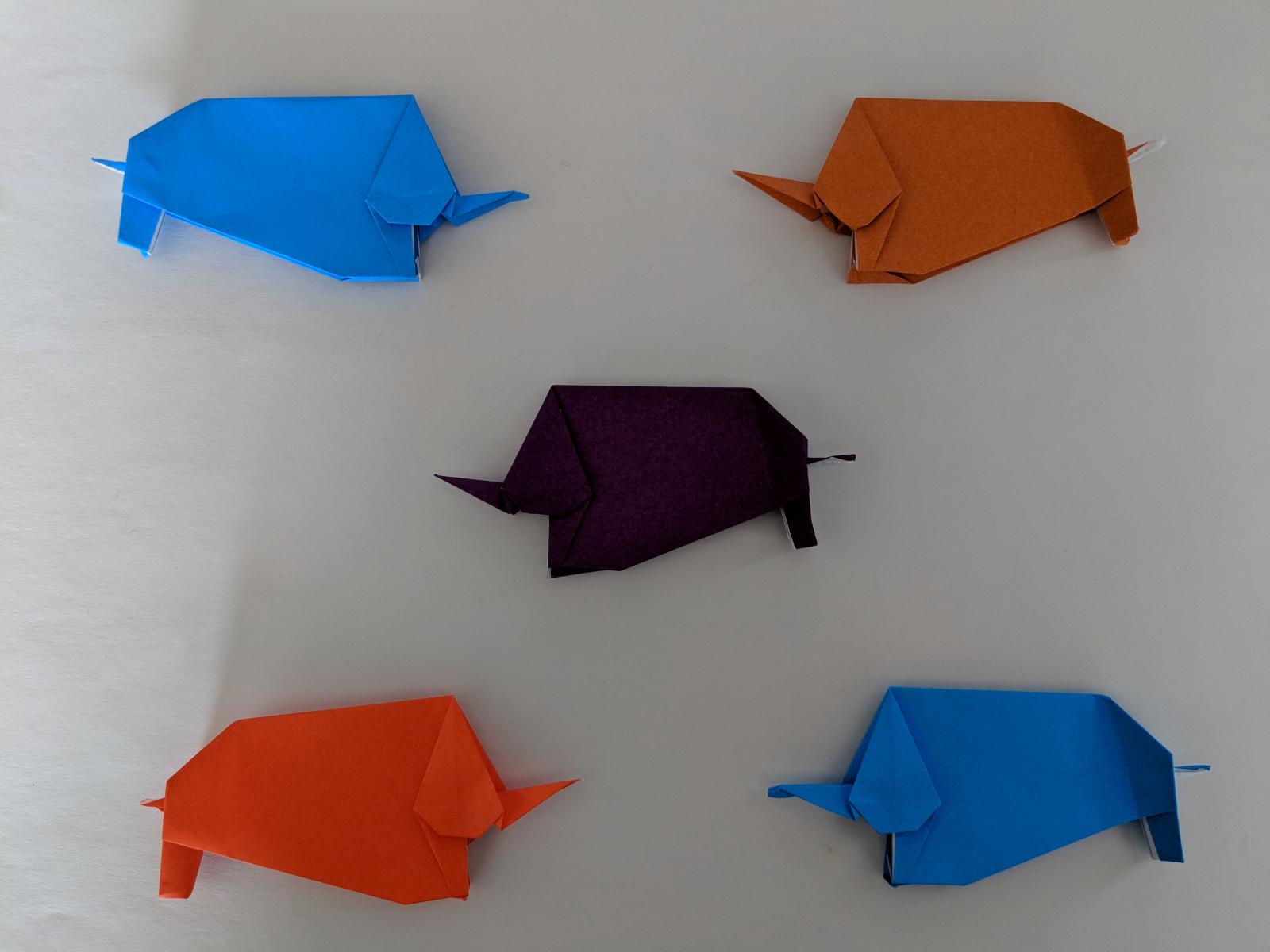 This process was educational, and probably more so than if I had made some complicated model from a book I found somewhere. By designing my own model, I was asking questions about what I could do differently to get different results, like how to make the legs longer or angled differently. I wouldn't think about this at all if I was following someone else's instructions. Following someone else's instructions is also more stressful because the instructions are often not made very well. This wasn't as monumental of a task as I thought it was going to be. Sam's advice to "just start folding" was good advice.