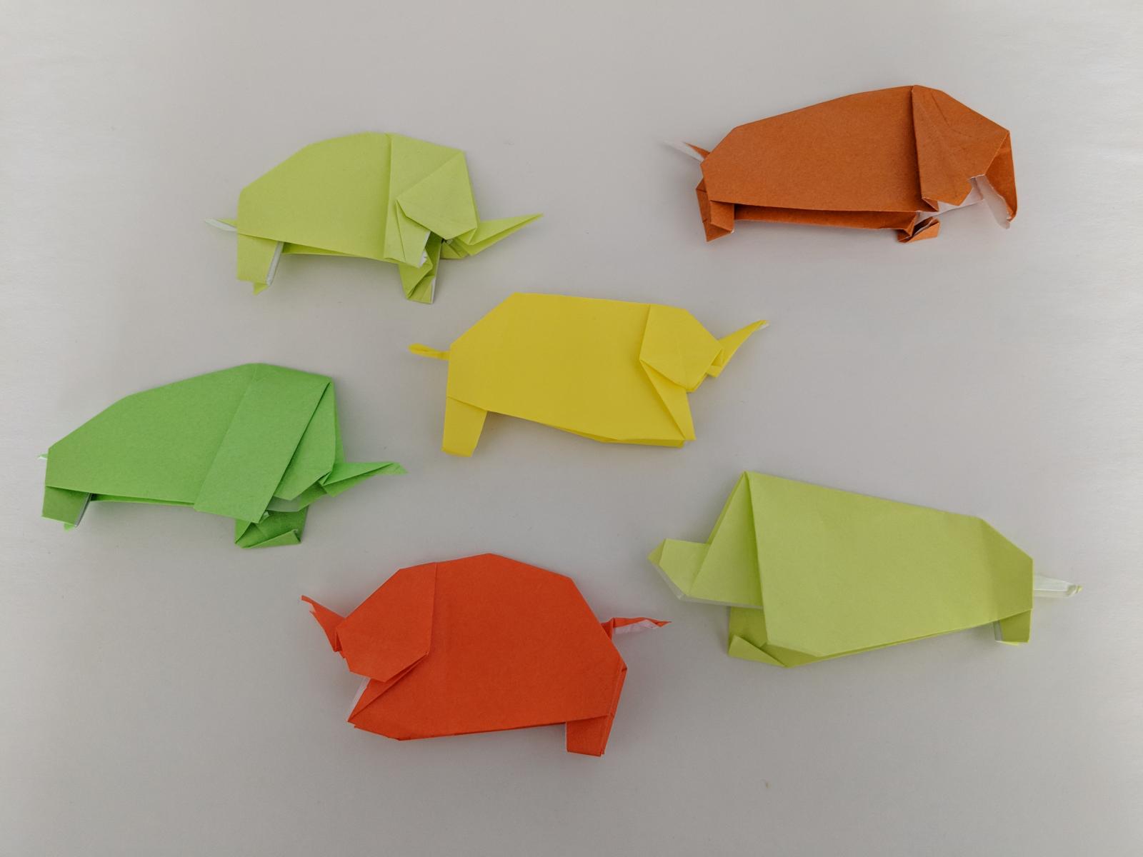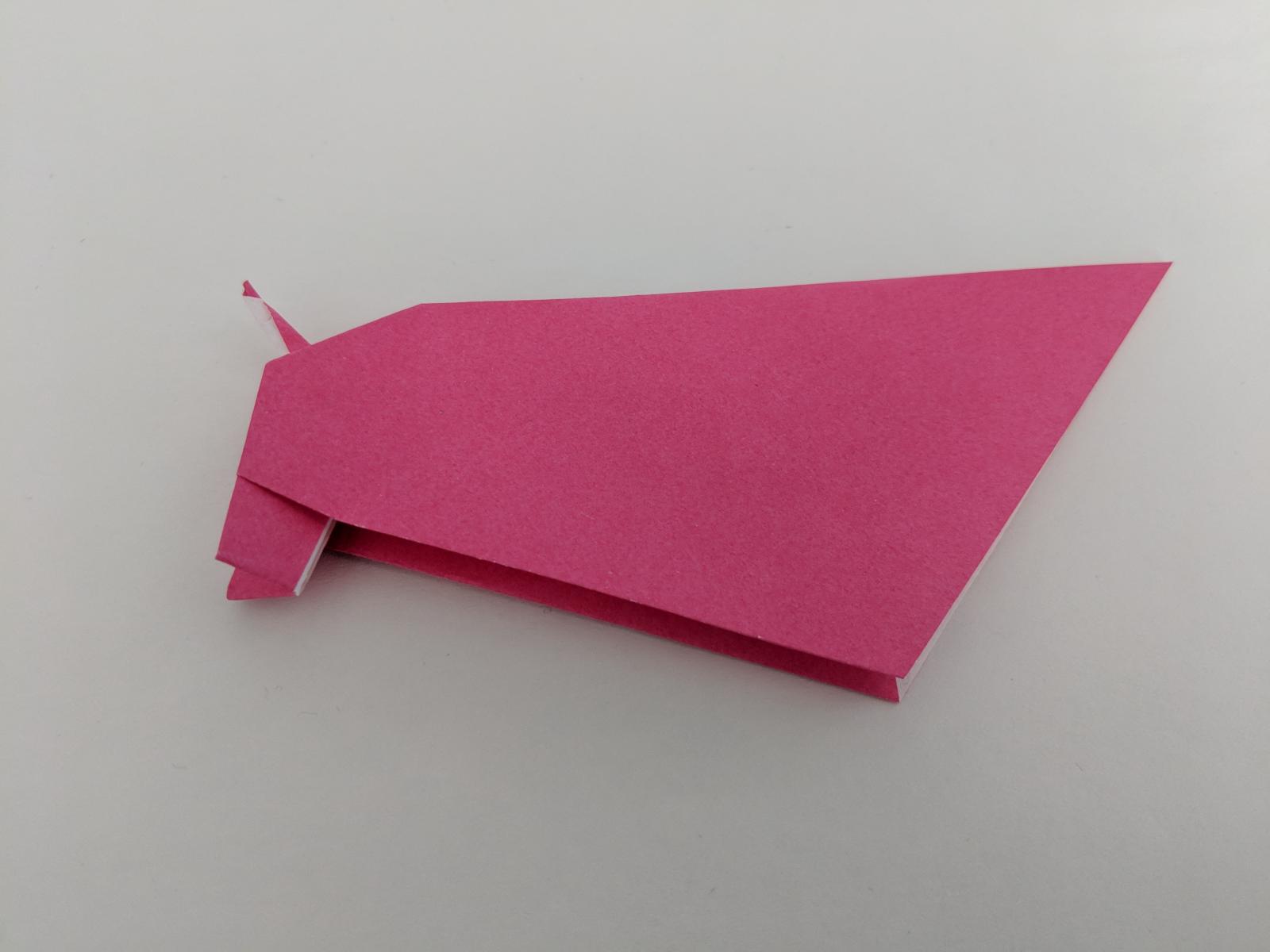 Something I couldn't do is the double rabbit ear fold. I tried and got confused. Rather than discard my failed attempt I set it aside and moved on to other things. After a while I came back to that piece of paper when I looked at it and noticed that I could add a few more folds to make this: