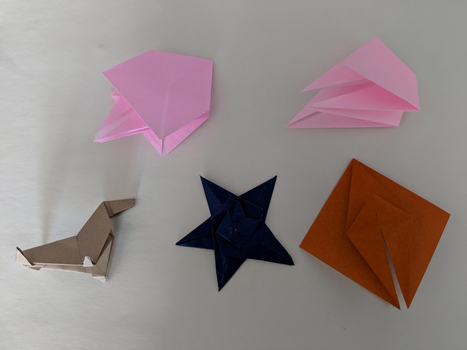 I started with the basic models in John Montroll's book Animal Origami for the Enthusiast. I folded things, hoping for inspiration. Some of the models were instructional like a kite base or petal fold, while others were completed things like a 5-pointed star.