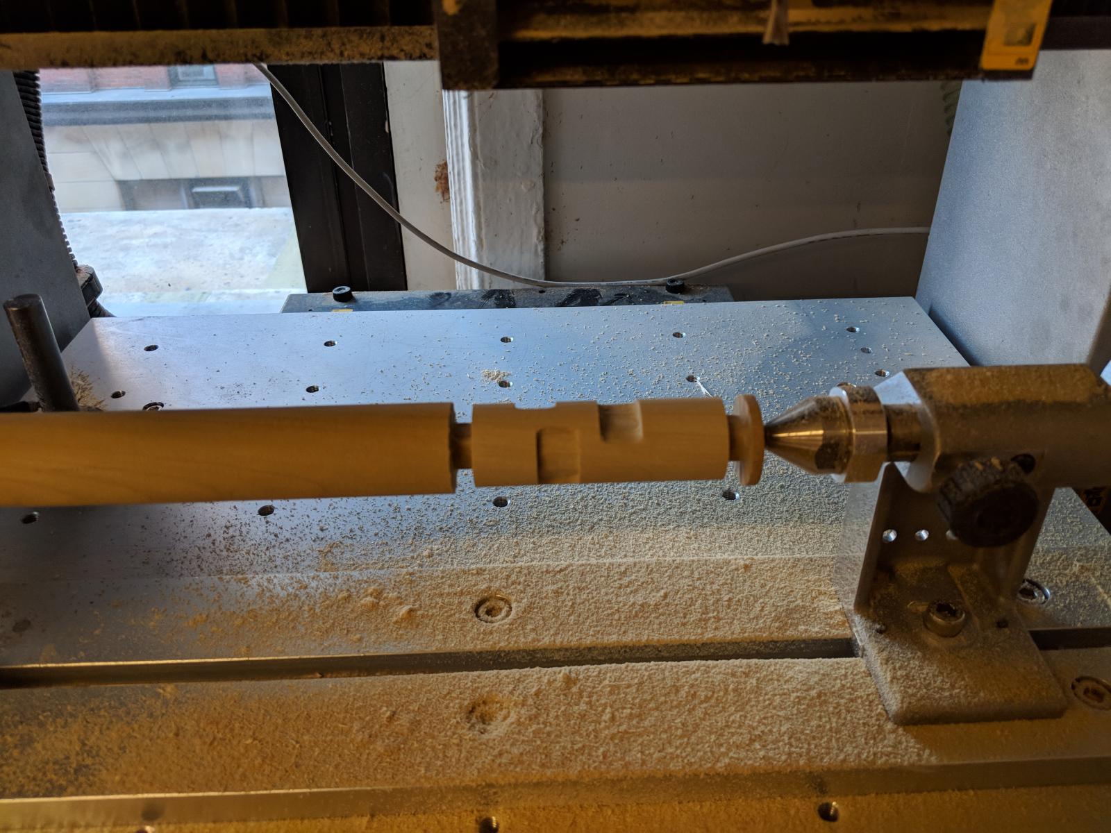 For my job it would have been a lot faster and more efficient if it also used the Y axis to mill some of the surfaces. It is capable of doing this when milling flat jobs, but when it is milling flat jobs it doesn't rotate the wood.