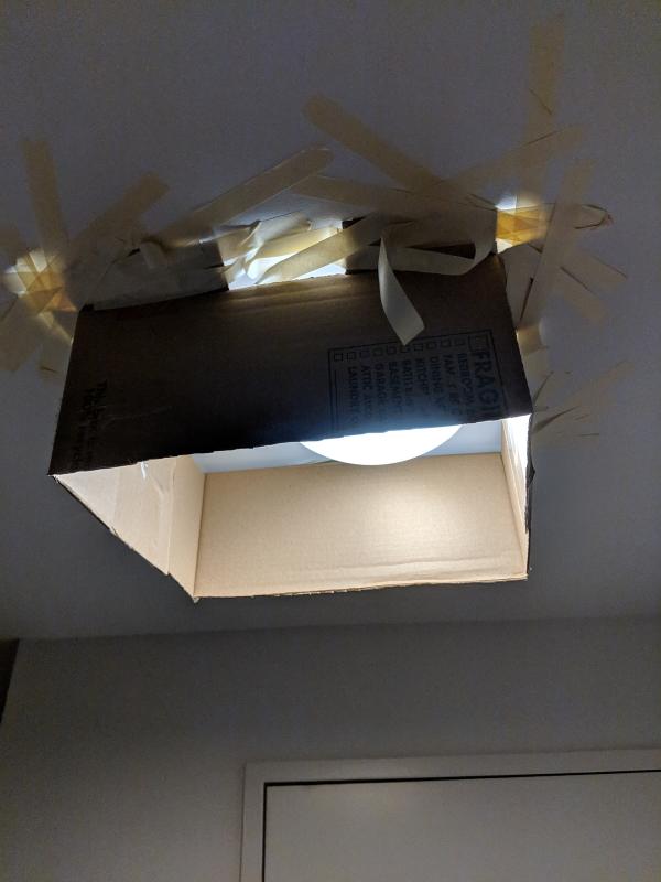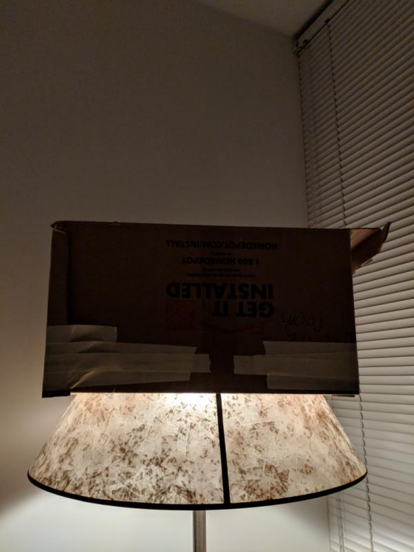 Every other light source in my apartment was turned off while taking any measurements. All lights were modified using cardboard, packing tape and masking tape. All modifications were extremely janky.