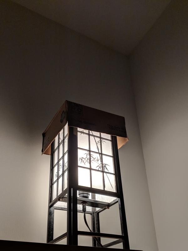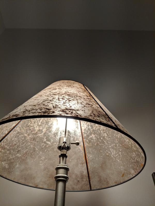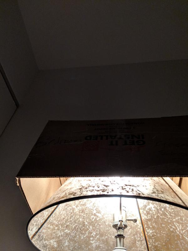 My first light source is a standing lamp in my bedroom with a 100 Watt incandescent bulb. The lamp illuminates the ceiling above it at 34 lx and is reduced to 4 lx with the modifications. This modification took quite a bit of time because it was my first one.