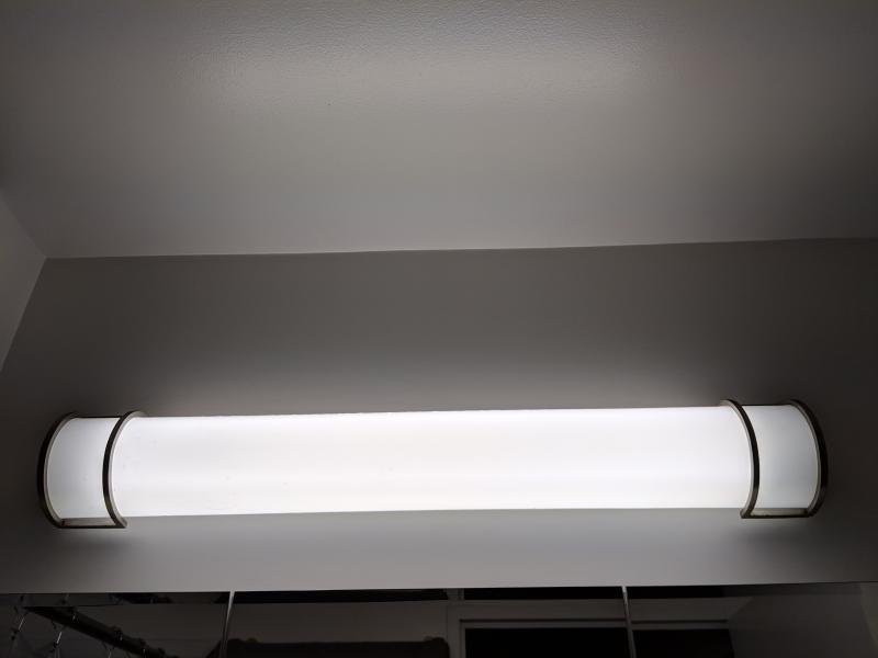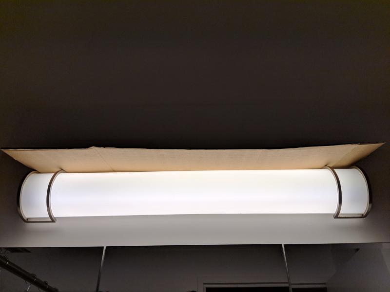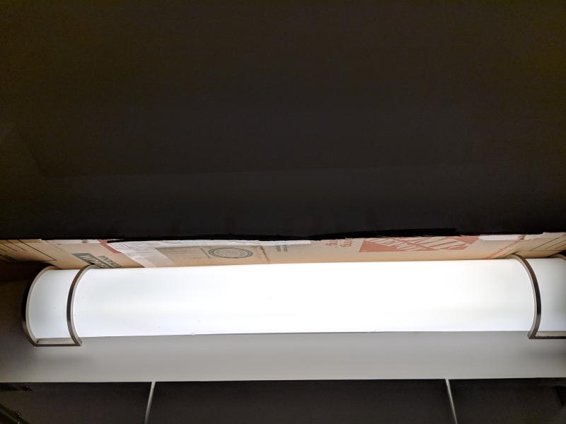 The fourth light source is the fluorescent lighting in my bathroom. This light illuminates the ceiling at 788 lx. With a simple cardboard cover I was able to reduce that to 46 lx.