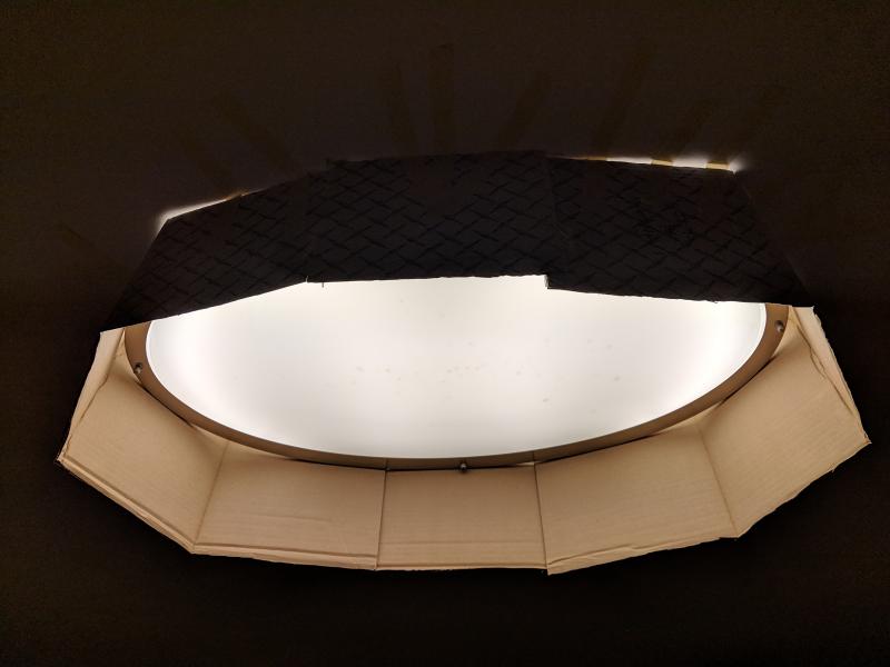 Unfortunately this modification fell down after a day or two. I made a second modification for it on day 6. This modified light illuminated the ceiling at 73 lx.