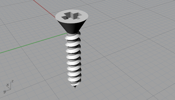 Next I used the Scale1D command to shrink the screw by a factor of 10. The model had been been built at 10x the scale so that I could take advantage of the 1.0 mm grid snapping. In retrospect I should have changed the grid snapping to 0.1 mm in the document properties.
